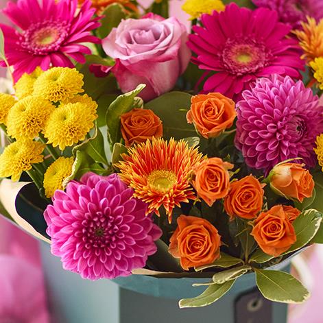 Small but perfectly formed, this classic autumn gift box will feature gorgeous blooms in bright vibrant shades like cerise and sunshine yellow.